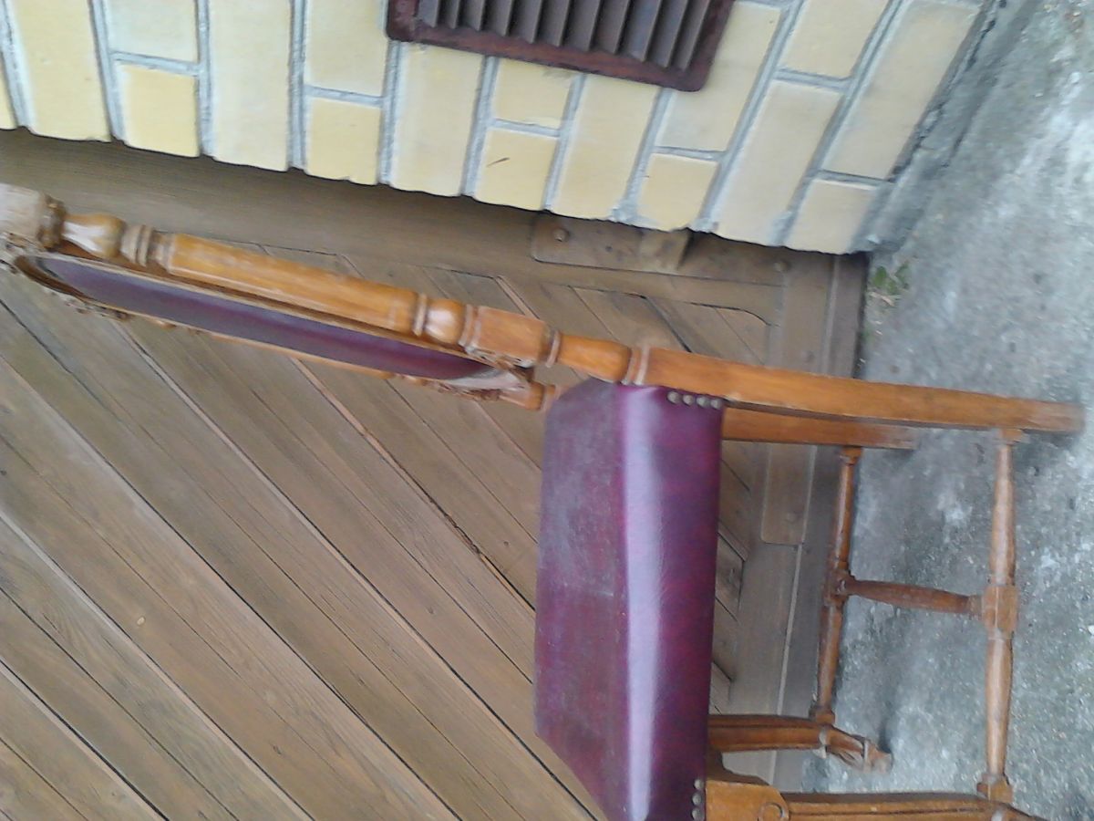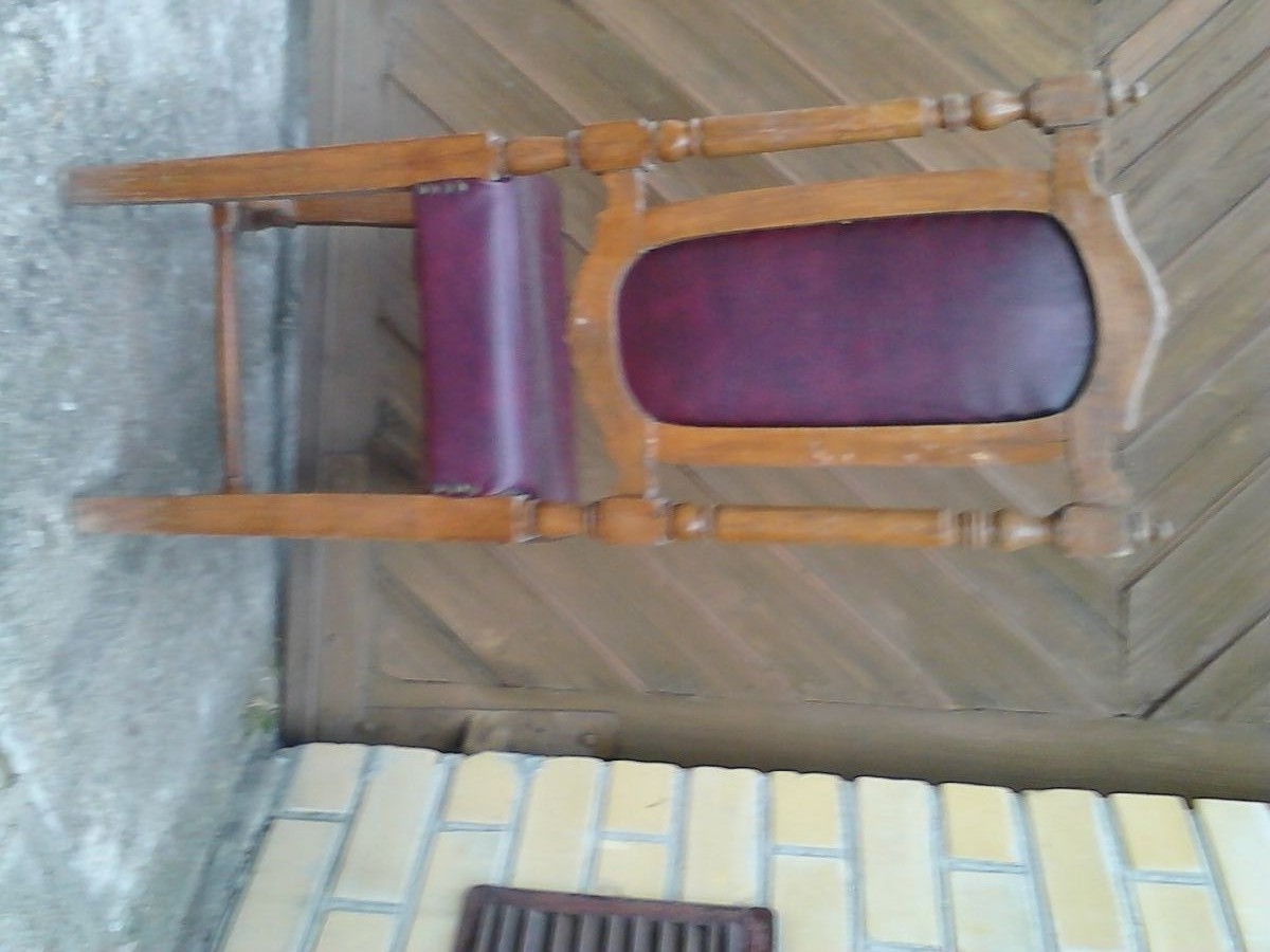 parduodu medinį drožiniais ir dirbtine oda pagražintą krėslą