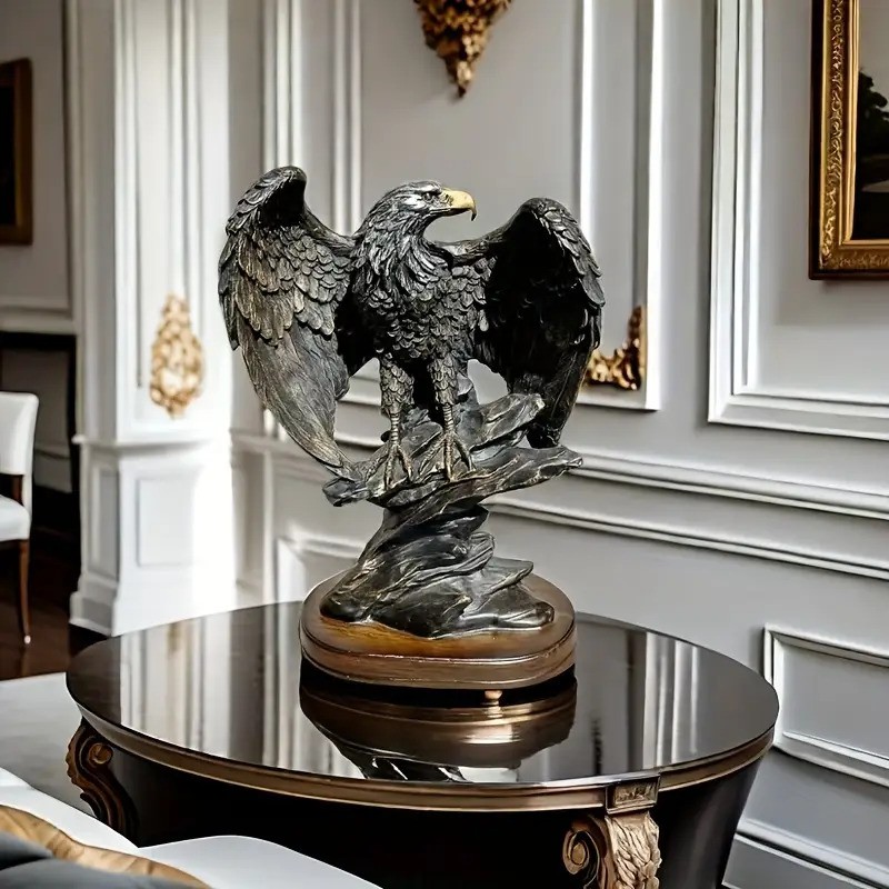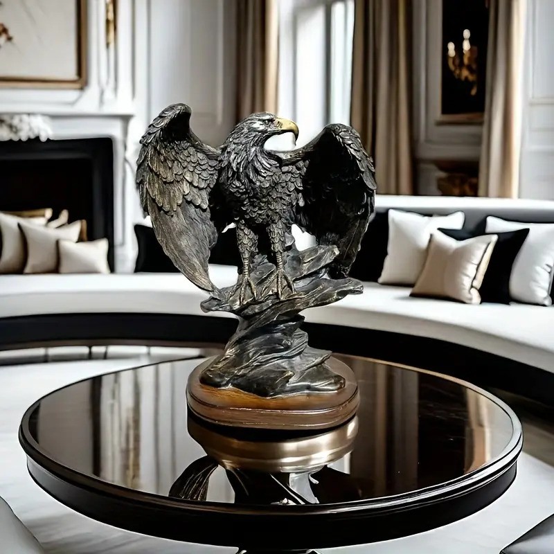 Kūrybinė erelio statulėlė iš dervos, išskėstais sparnais, tinkanti namų dekoravimui, svetainei, darbo kambariui, TV spintelei, sieninei spintai, biuro stalo dekoravimui ir šventinėms dovanoms.