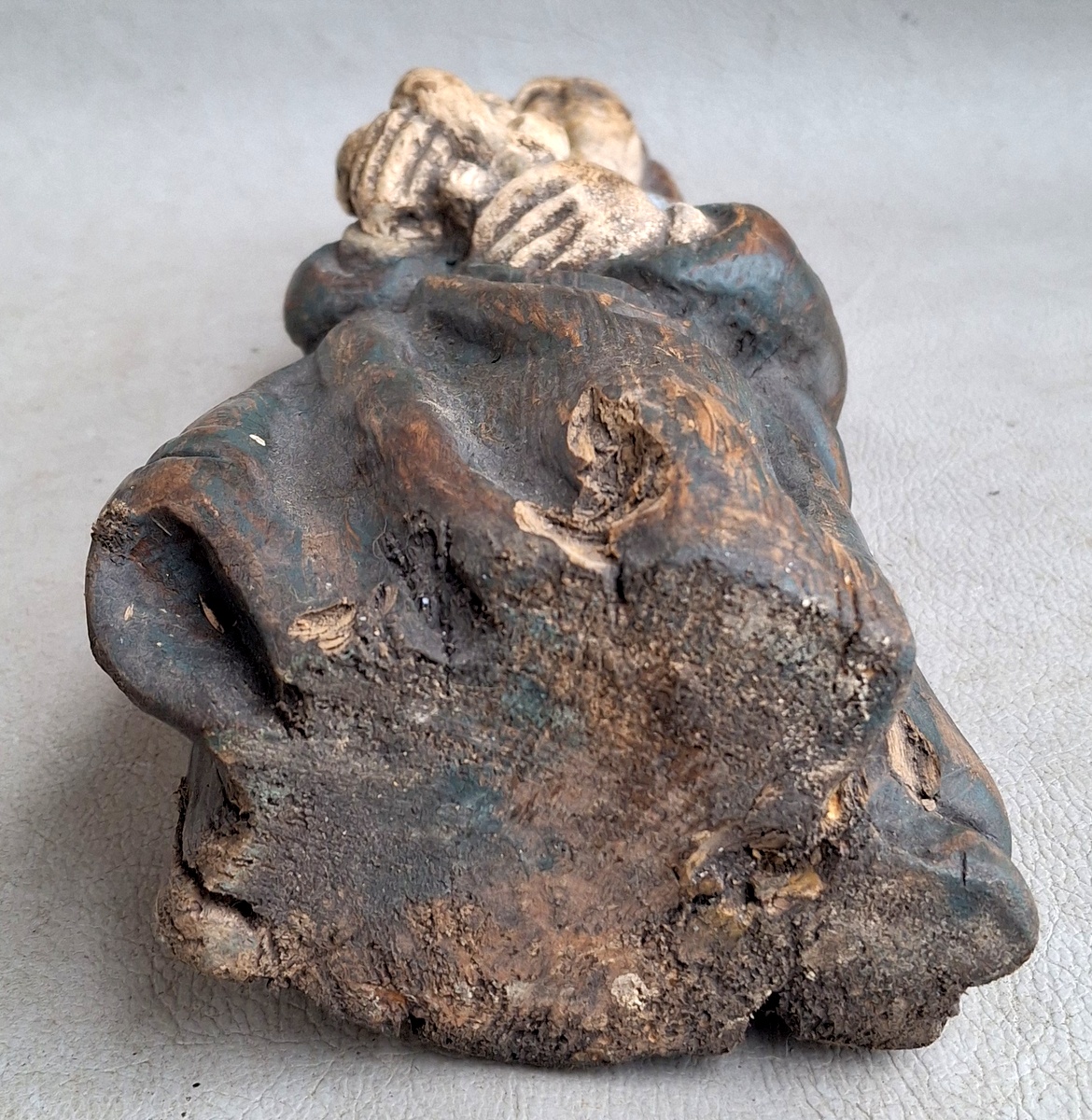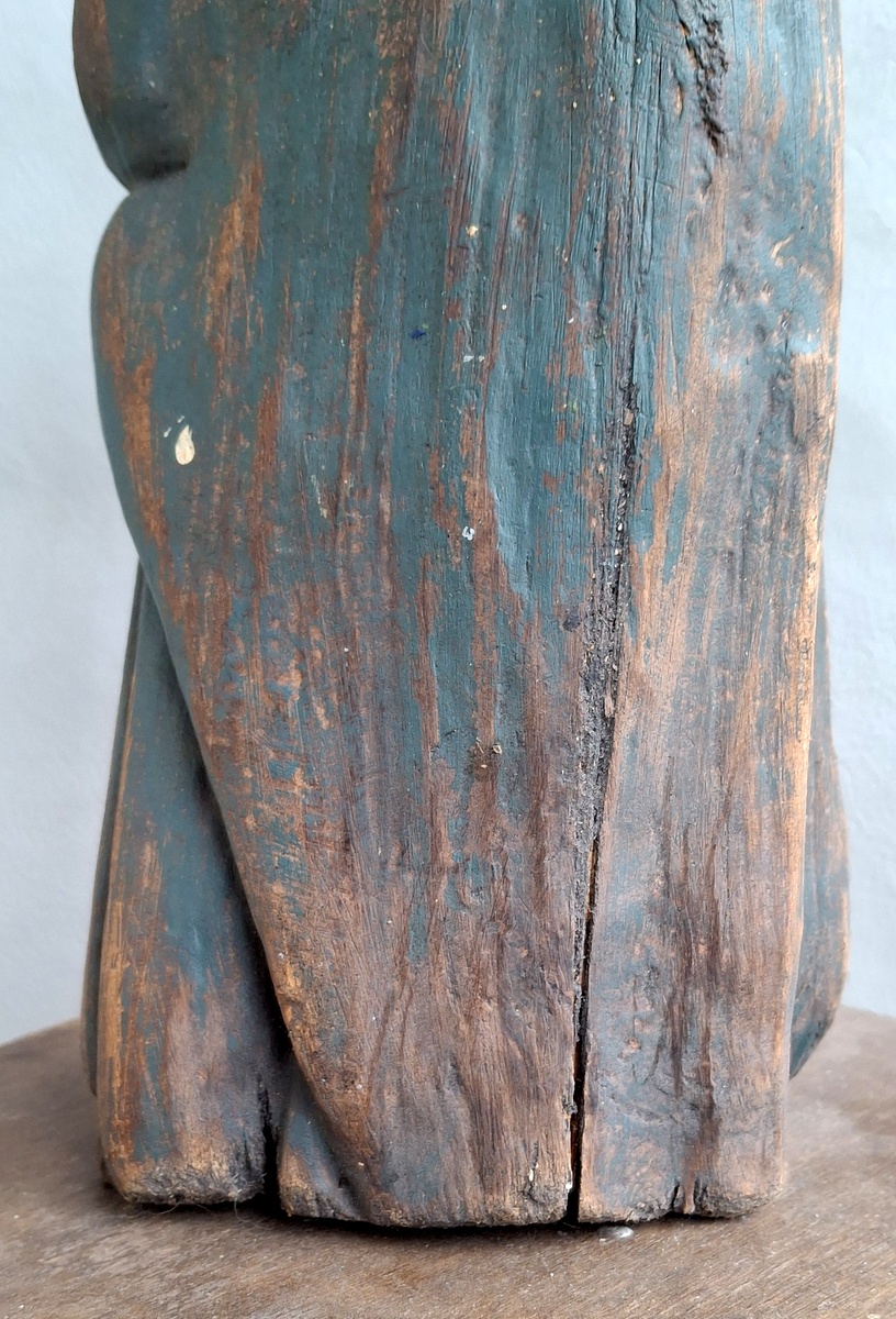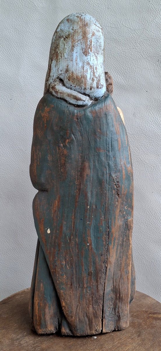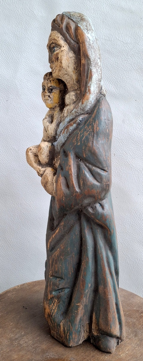 Liutuviška Žemaitiška medinė labai sena skulptūra Marija su Kūdykiu.