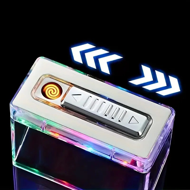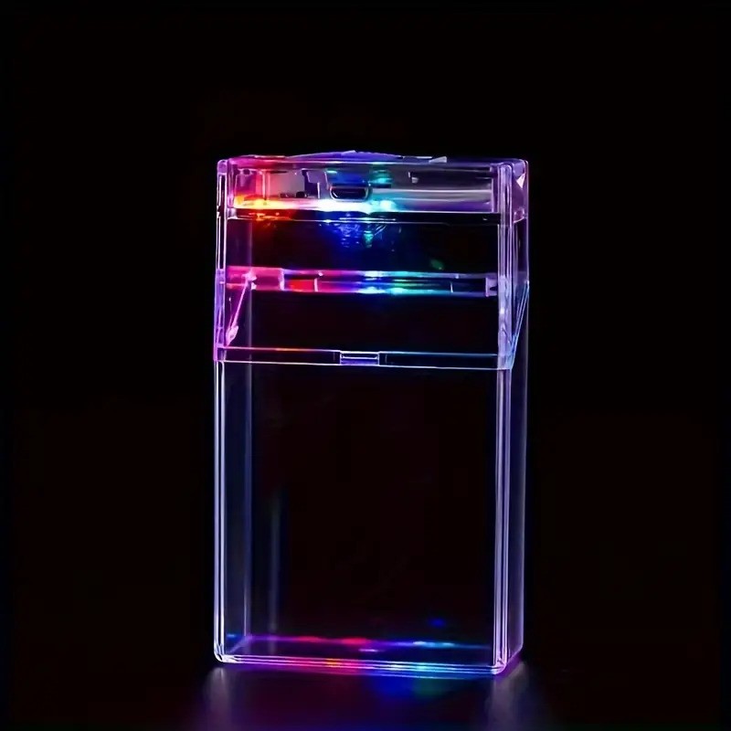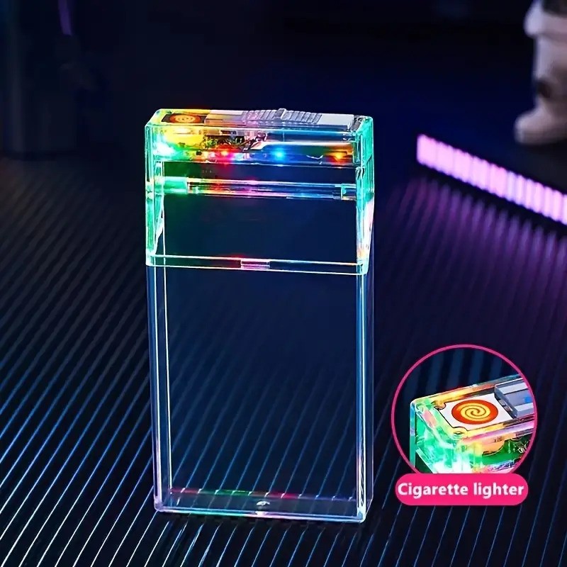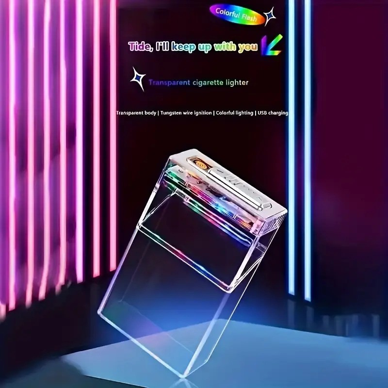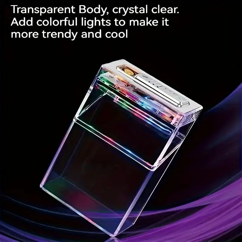 2) Toks pats tik prkmatomas Cigarečių Dėklas su Žiebtuvėliu, Skaidrus, su Vaivorykštės Spalvos mirksinkčiu prsidegimu.